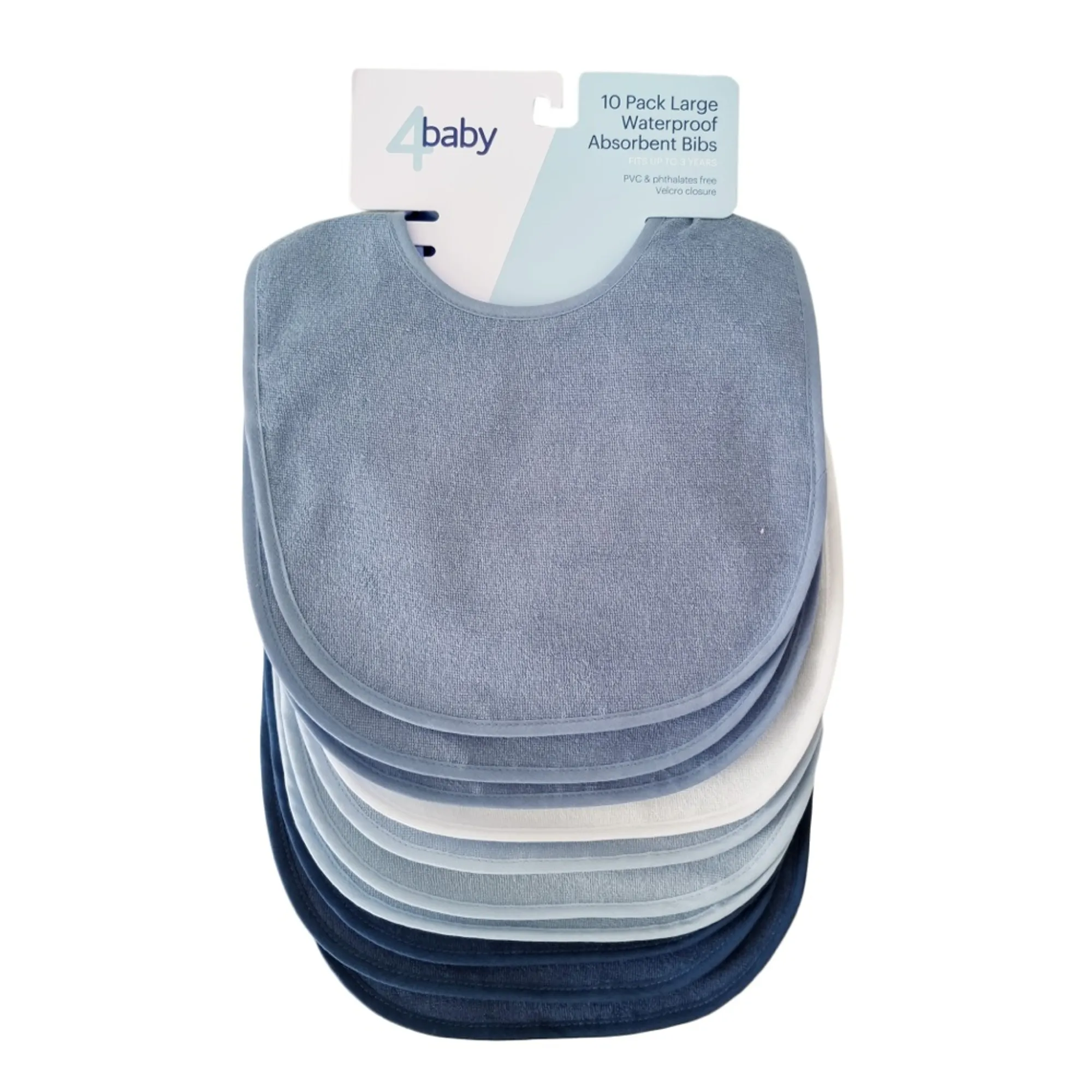 A convenient pack of 10 bibs for every day of the week and more.”
