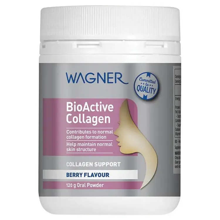 Collagen is an abundant protein in the human body, and most abundan component of extracellular matrix. A reduction in total collagen production is a characteristic of ageing skin. Hydrolysed Collagen when taken orally can contribut to maintain skin structure. Incorporating collagen intake in routine can provide an inside and out solution to your skincare. Wagner Bioactive Collagen Powder is berry flavoured and is an easy way to increase your collagen intake.